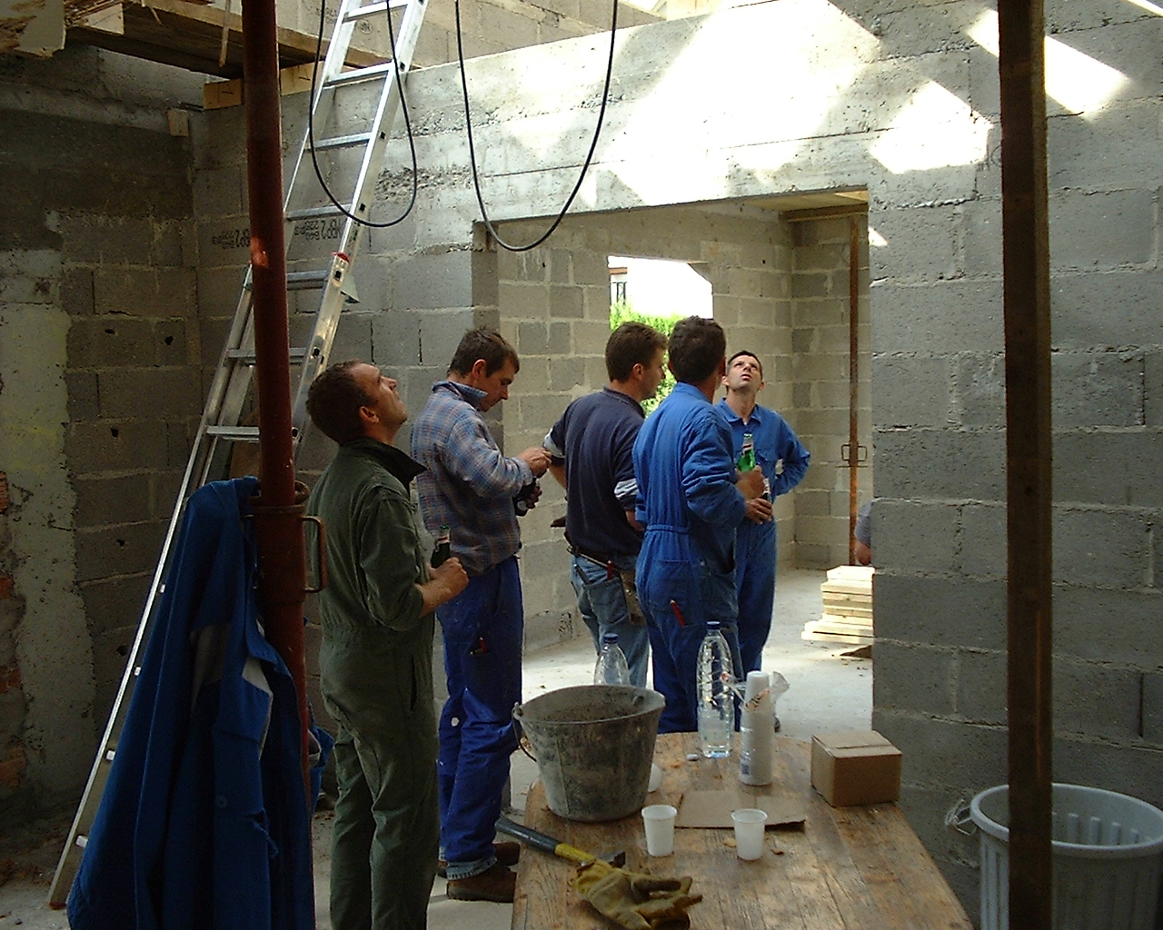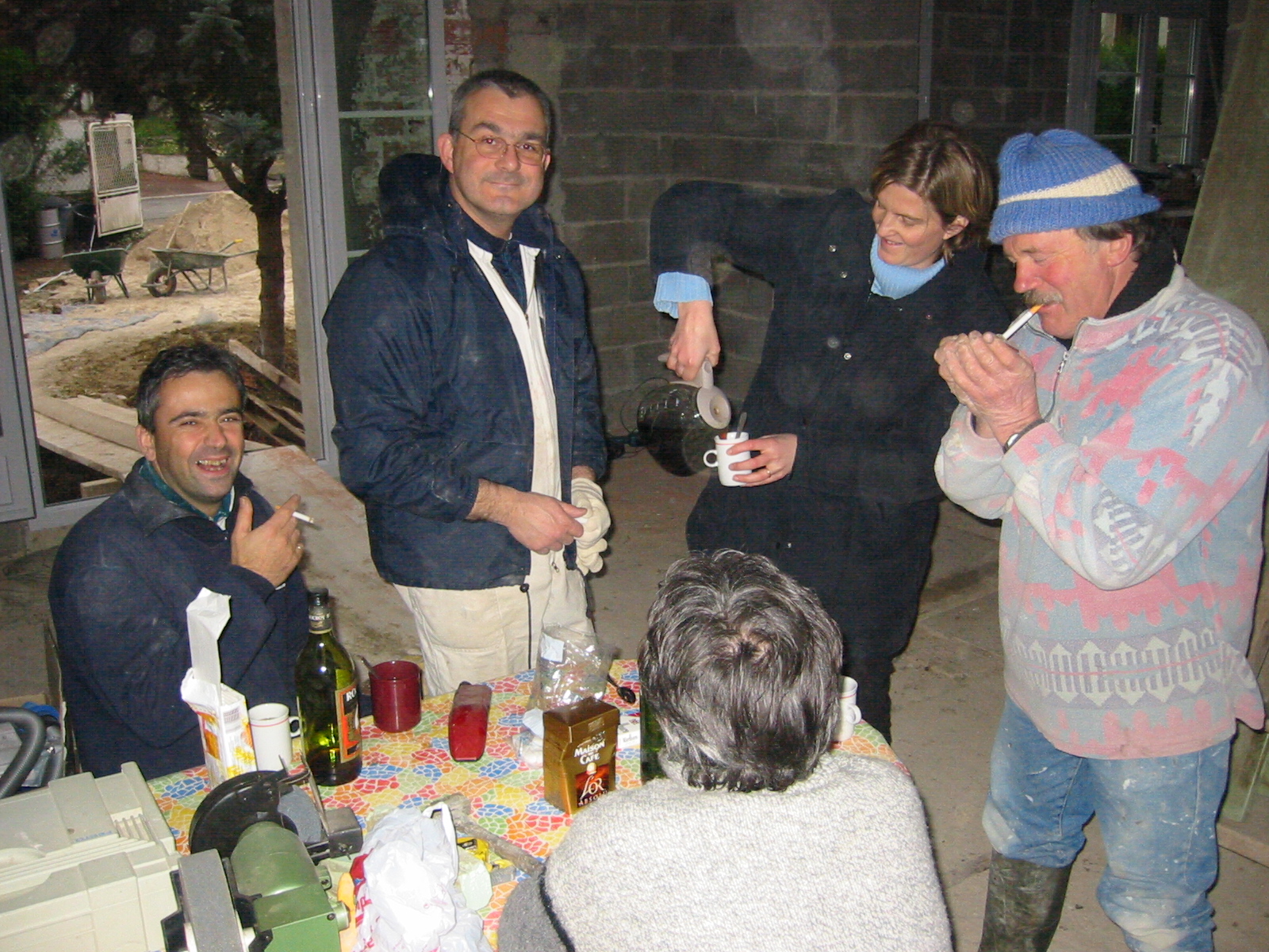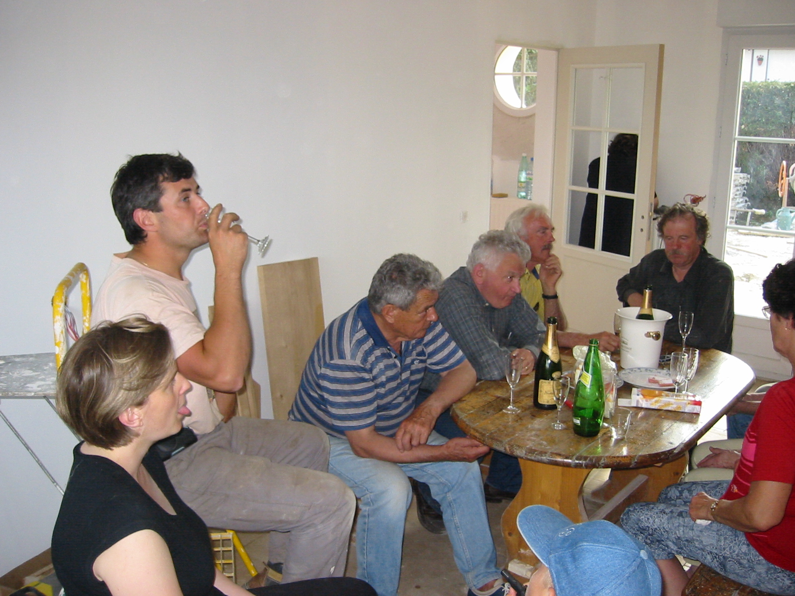 | Nous certifions que, cette fois ci, il n’y aura pas de bétonnière à remplir, ni brouette à rouler, ni parpaings à empiler ou sac de ciments à porter et qu’aucune pelle ou truelle ne sera utilisée. Seuls les verres pleins feront l’objet d’une manipulation assidue et il n’y aura rien à faire de plus que de boire un coup et passer un bon moment avec des gens sympathiques ! Promis craché ! | |||||